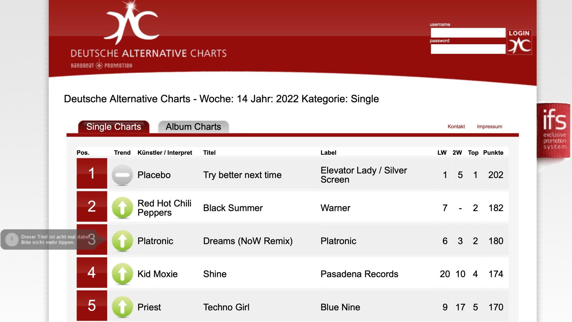 at the "German Alternative Charts"